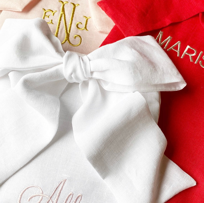 We embroider items from our collection as well as pieces you provide, offering custom monograms, motifs, and designs.